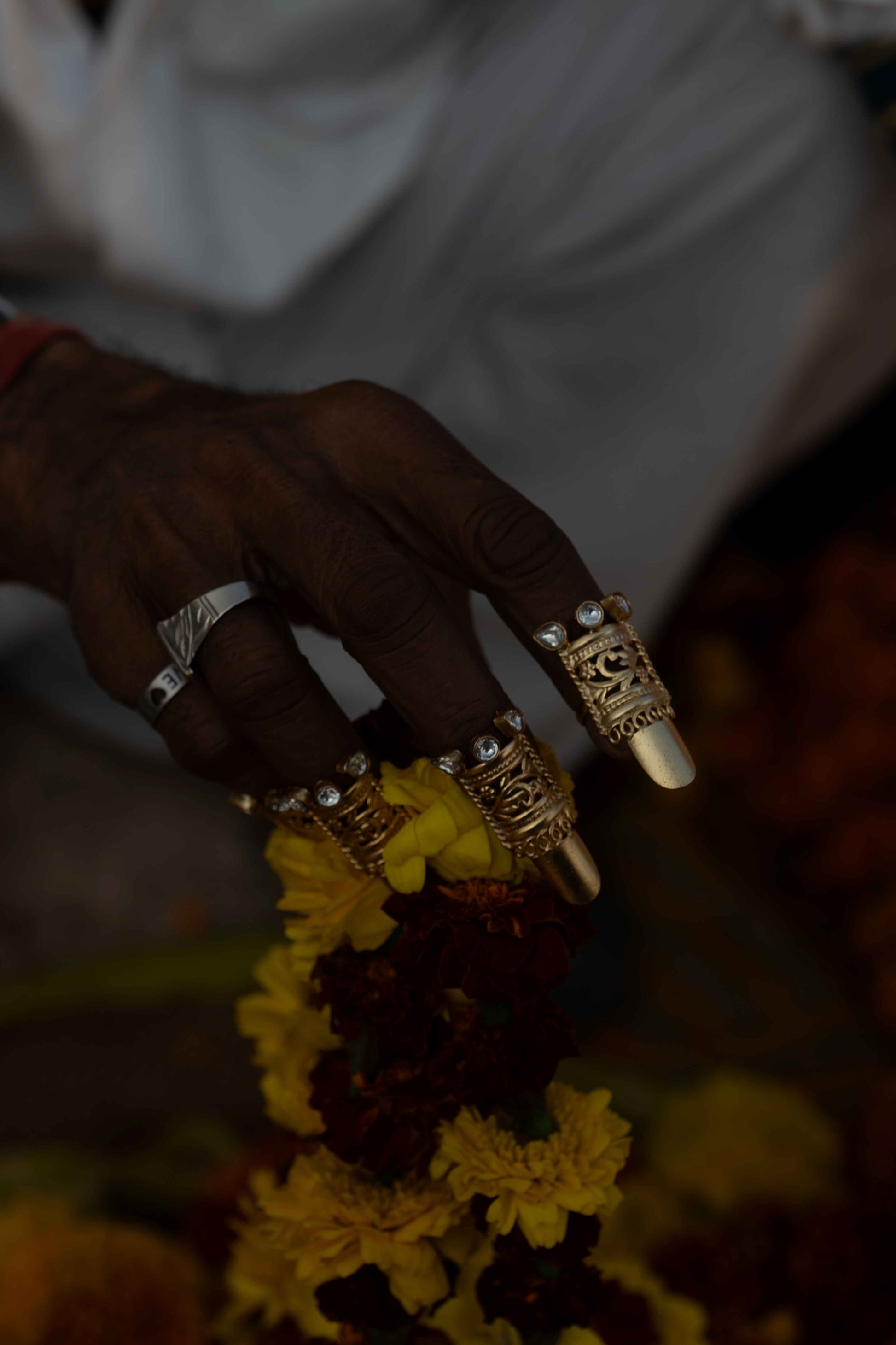The Adya nail ring is a stunning and spiritual piece of jewelry that draws inspiration from the intricate and sacred art of temple architecture. Named after Adya, which signifies "the first" or "the beginning" in Sanskrit, this nail ring embodies a deep connection to the divine and represents the first step towards spirituality, wisdom, and protection.