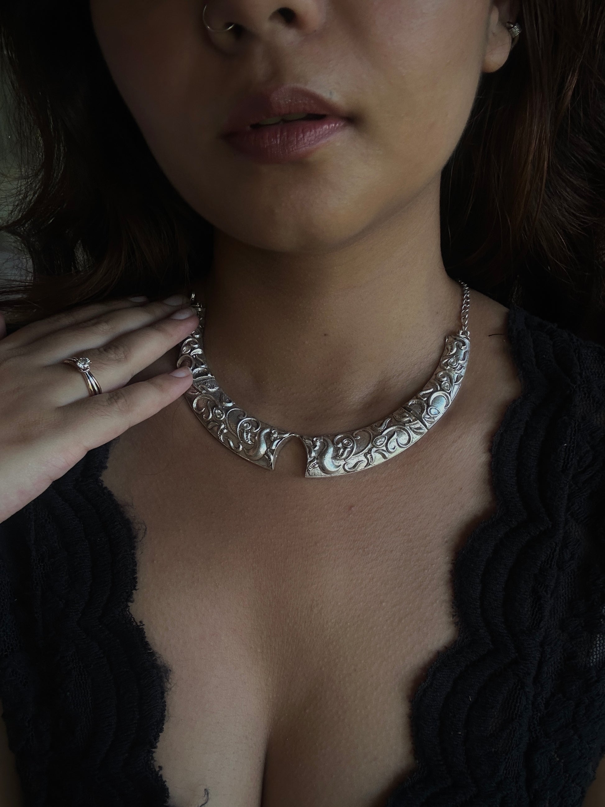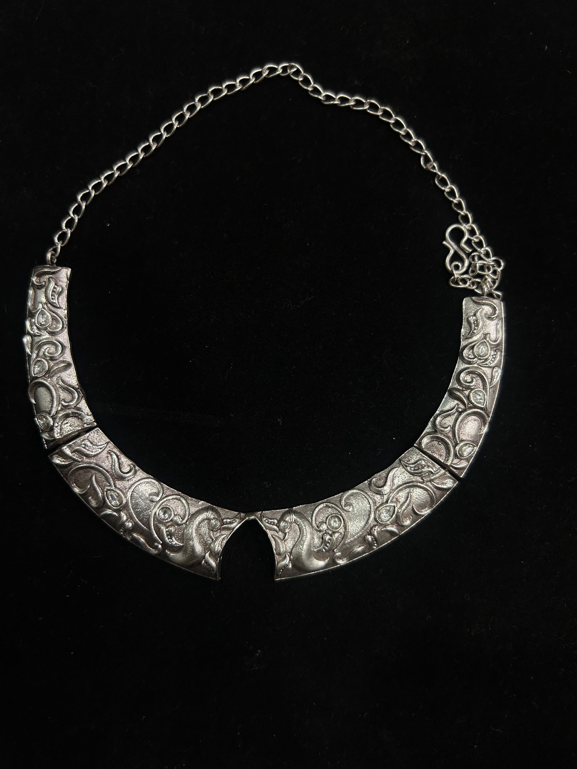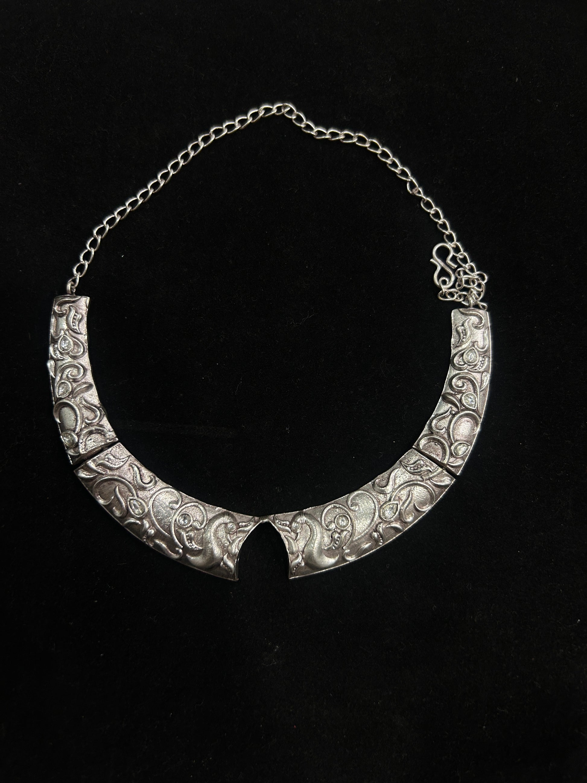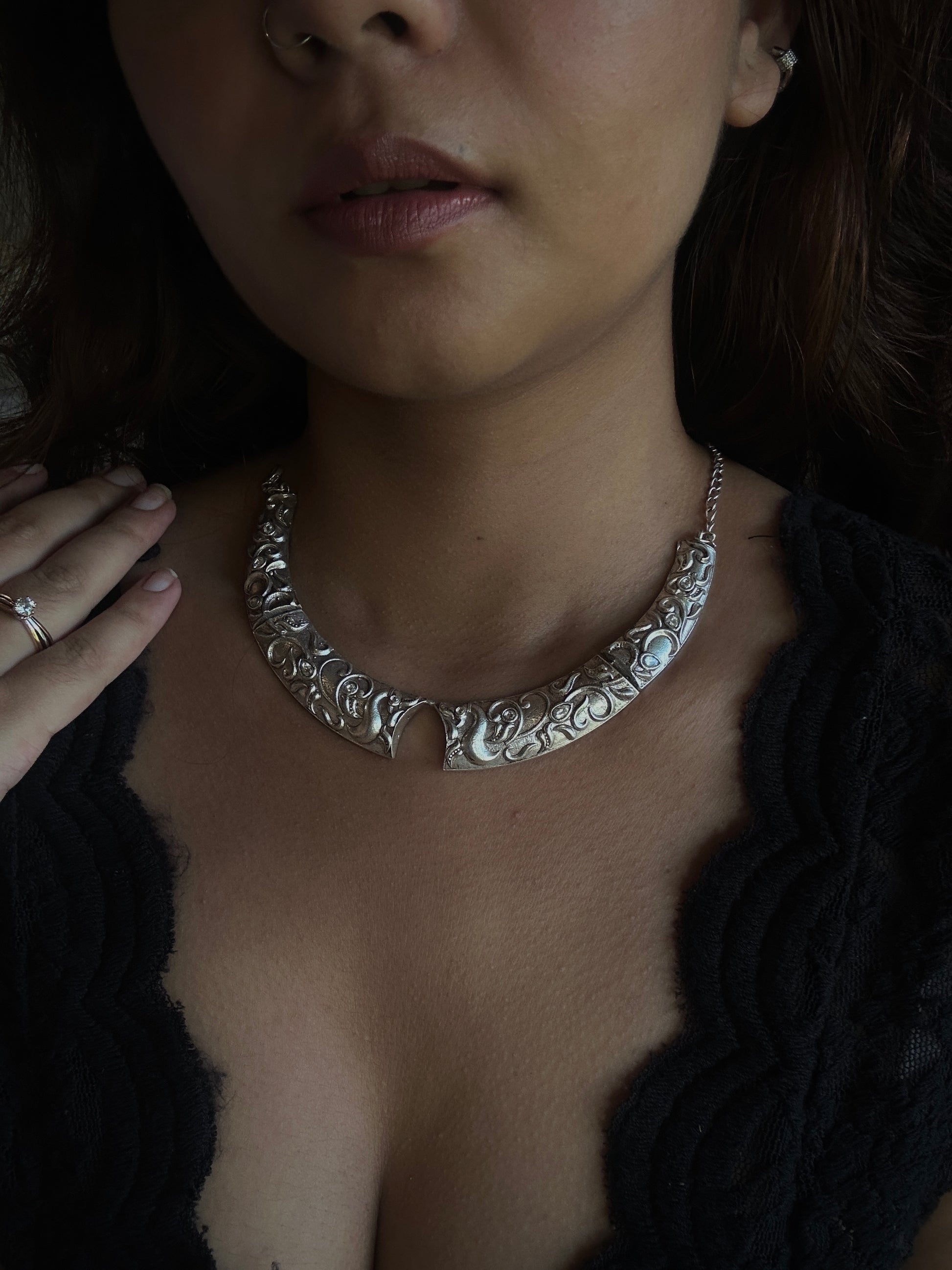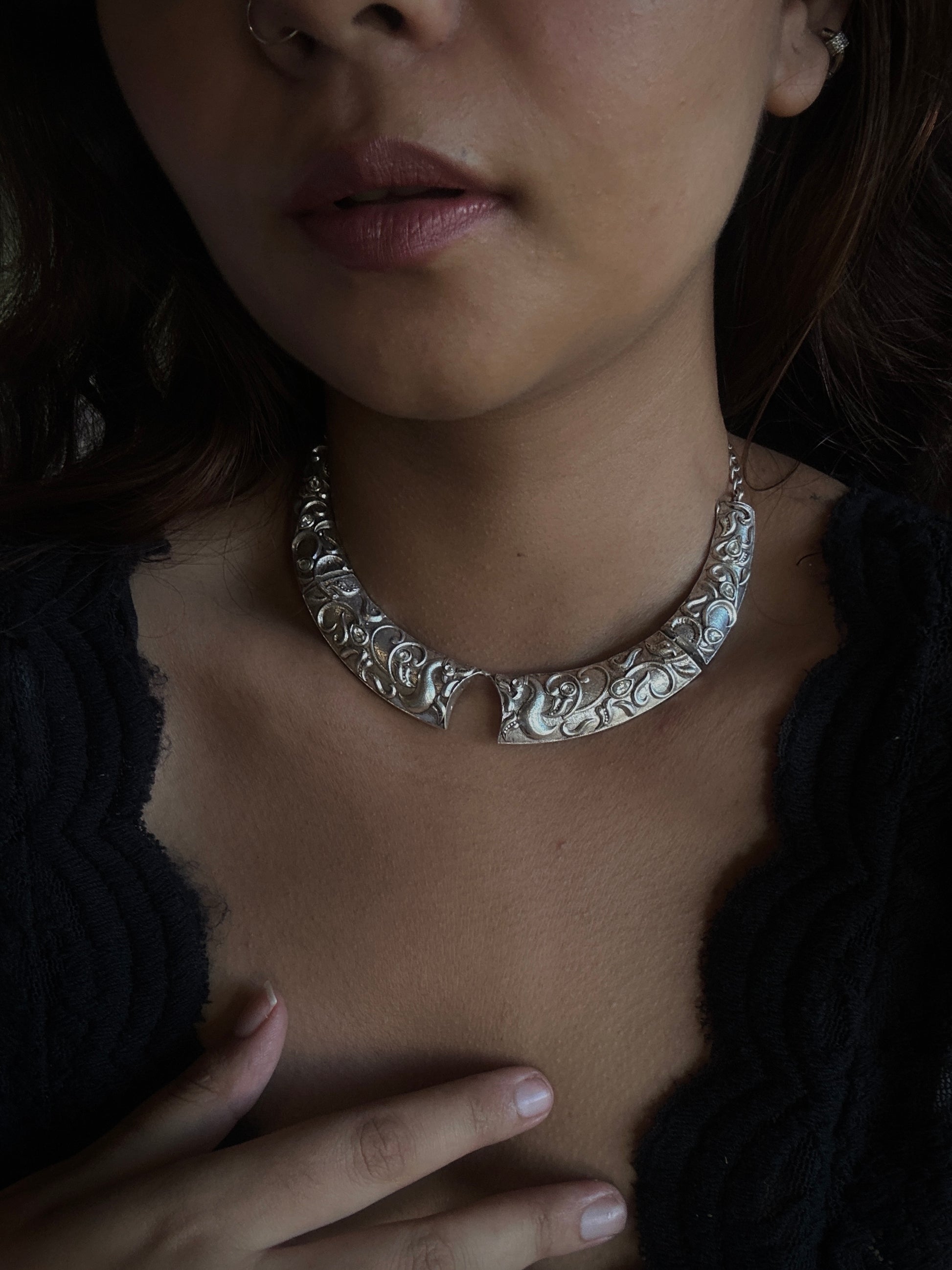 The Prakritika hasli is a captivating and spiritually rich piece of jewelry, designed to embody the beauty of nature, divine grace, and the elegance of traditional Indian craftsmanship. The name Prakritika is derived from the Sanskrit word Prakriti, meaning "nature" or "the natural world," and it reflects the deep connection between the divine and the earth's lush, flourishing beauty.