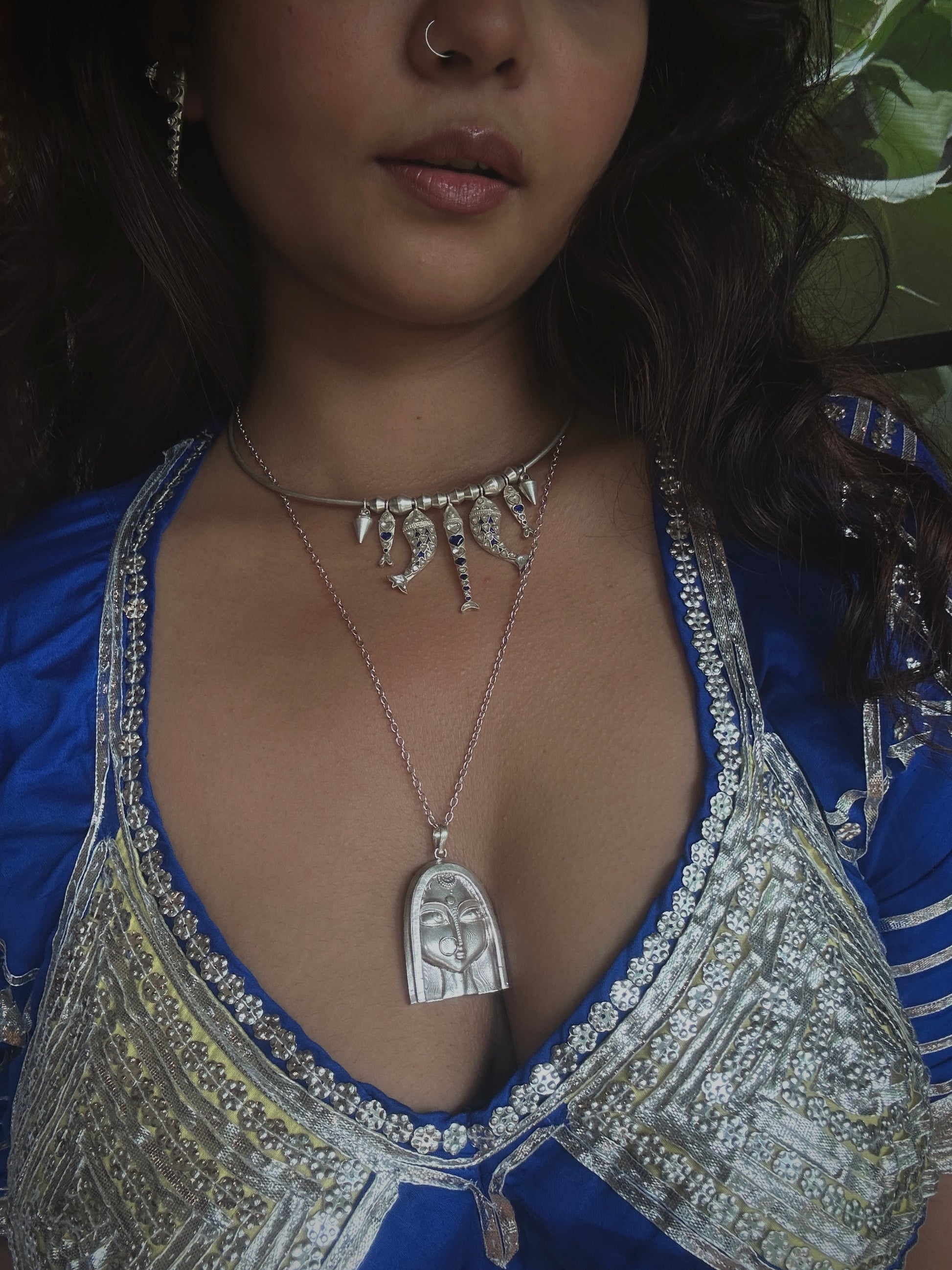 The Stree pendant goes beyond being a mere ornament. The pendant serves as a reminder of the divine feminine energy that exists within every woman, representing both inner strength and beauty.