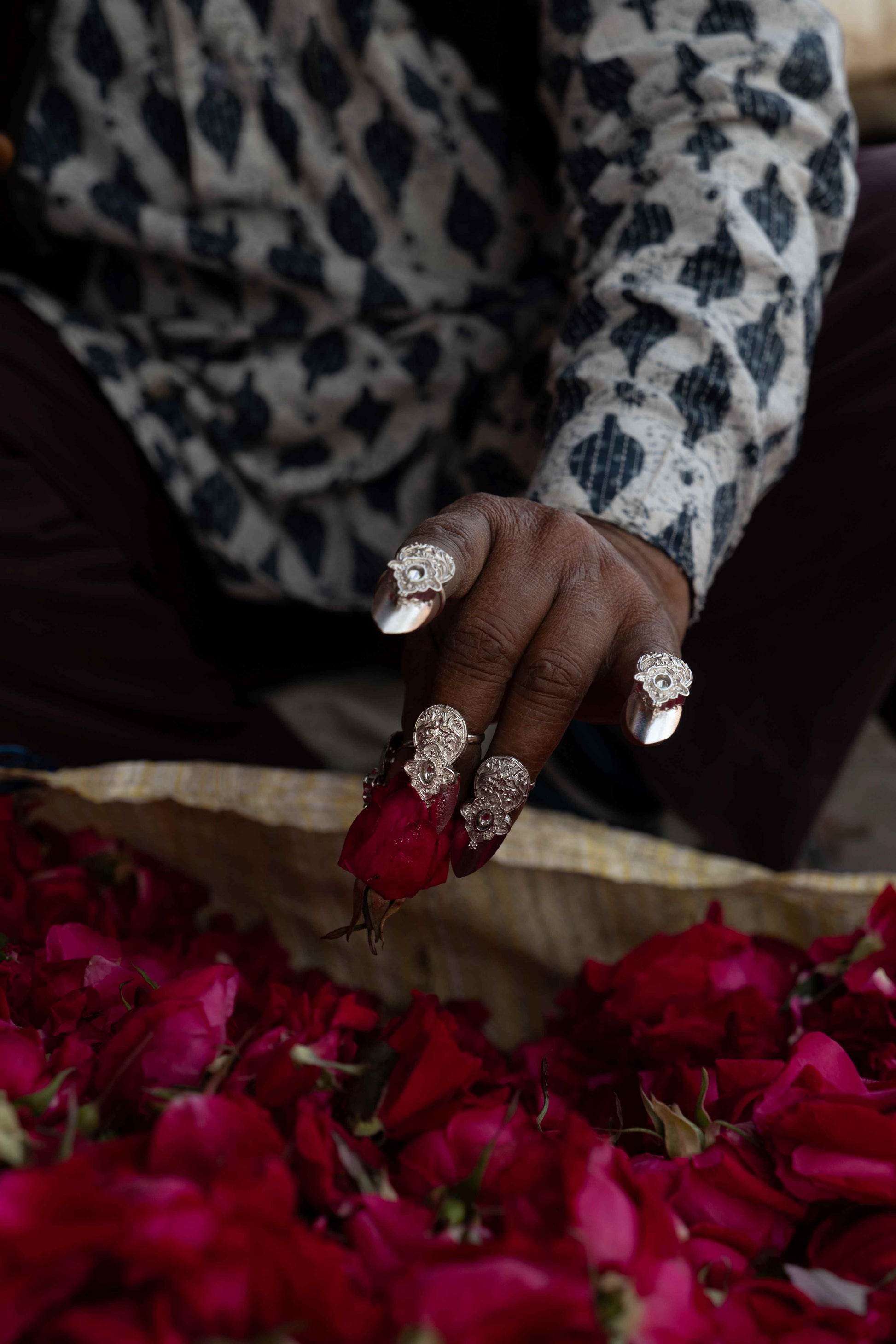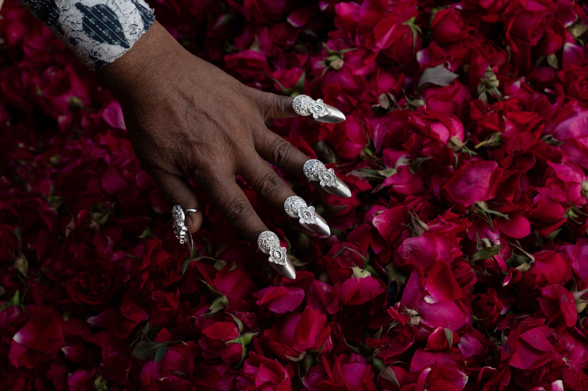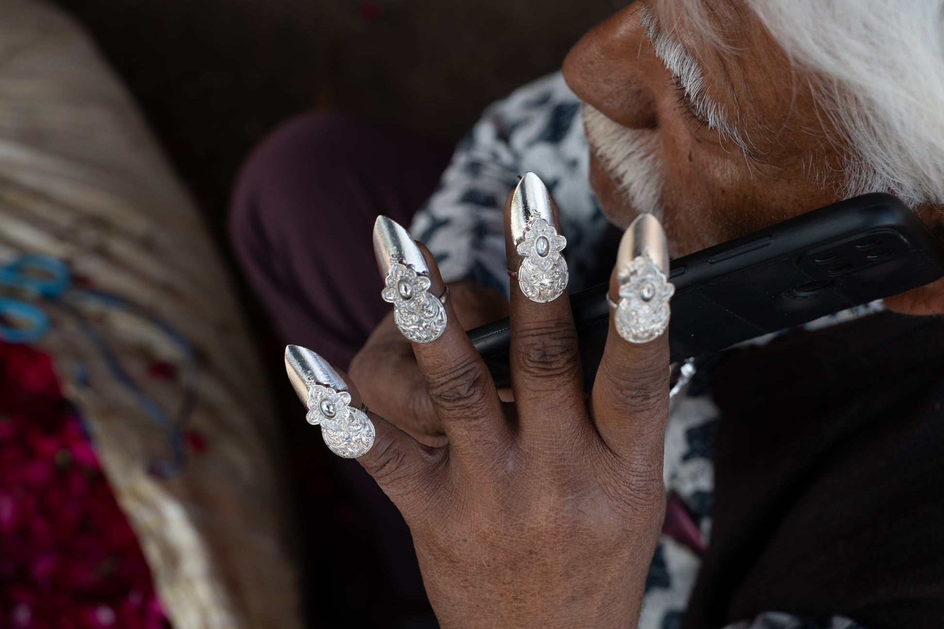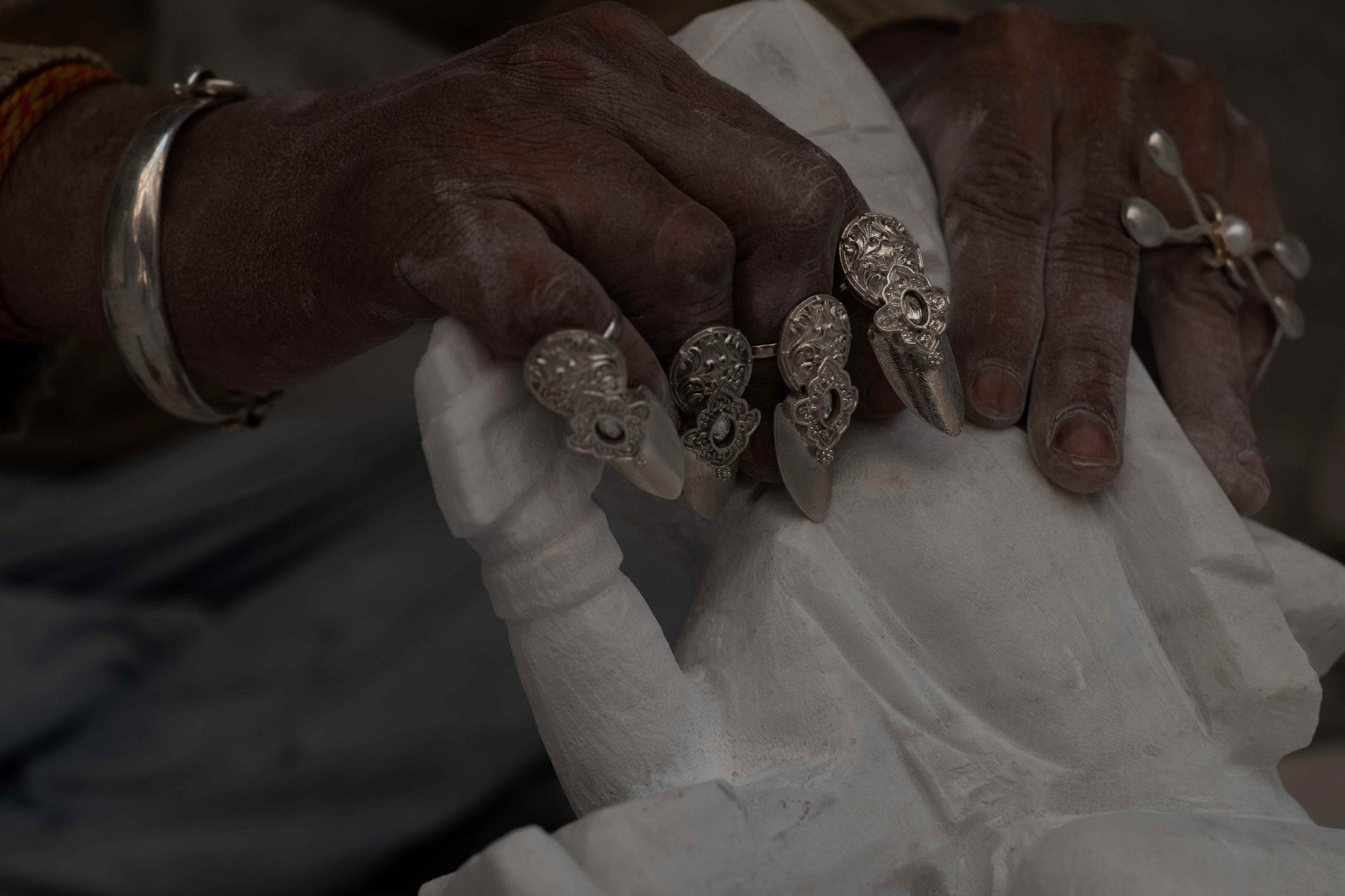 The Veerakriti nail ring is a bold and striking piece of jewelry that merges strength, spirituality, and nature. The name Veerakriti is derived from the Sanskrit words Veera (meaning "brave" or "warrior") and Kriti (meaning "form" or "creation"), symbolizing a creation of strength and courage. This nail ring is designed to embody power and resilience, reflecting the bold and unwavering energy of both divine protection and the untamed beauty of nature.